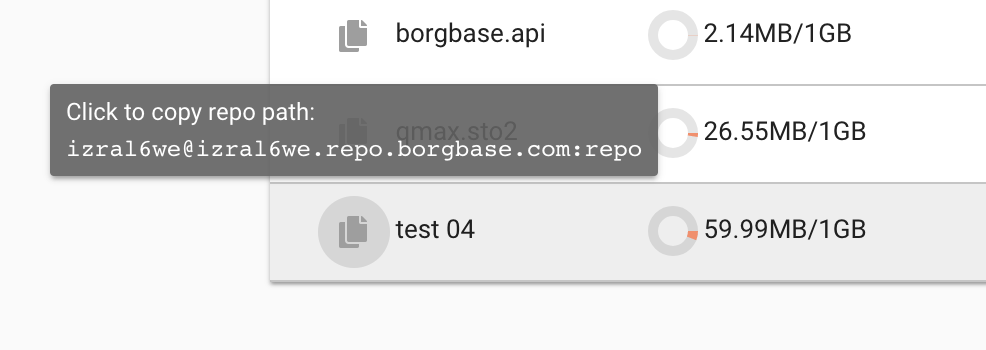 After adding the repo, you can easily copy the Repo URL by clicking the left icon in the row of the repo. The Repo URL is the address where your backup data can be accessed.